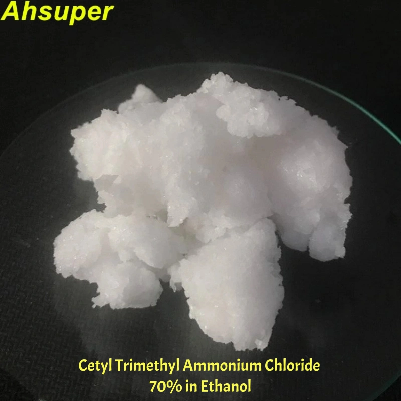 Cetyl Trimethyl Ammonium Chloride CAS NO. 112-02-7, also called Hexadecyl Trimethyl Ammonium Chloride, Cetrimonium Chloride, CTAC. Assay 99% powder or 70%/50% in Ethanol or 30% in Water. Slightly soluble in water, soluble in Ethanol or Isopropanol aqueous solution. Store in a dark, cool, dry, and ventilated place. Melting point 232-234℃. Made from Cetyl Dimethyl Amine and Methyl Chloride by quaternization reaction.